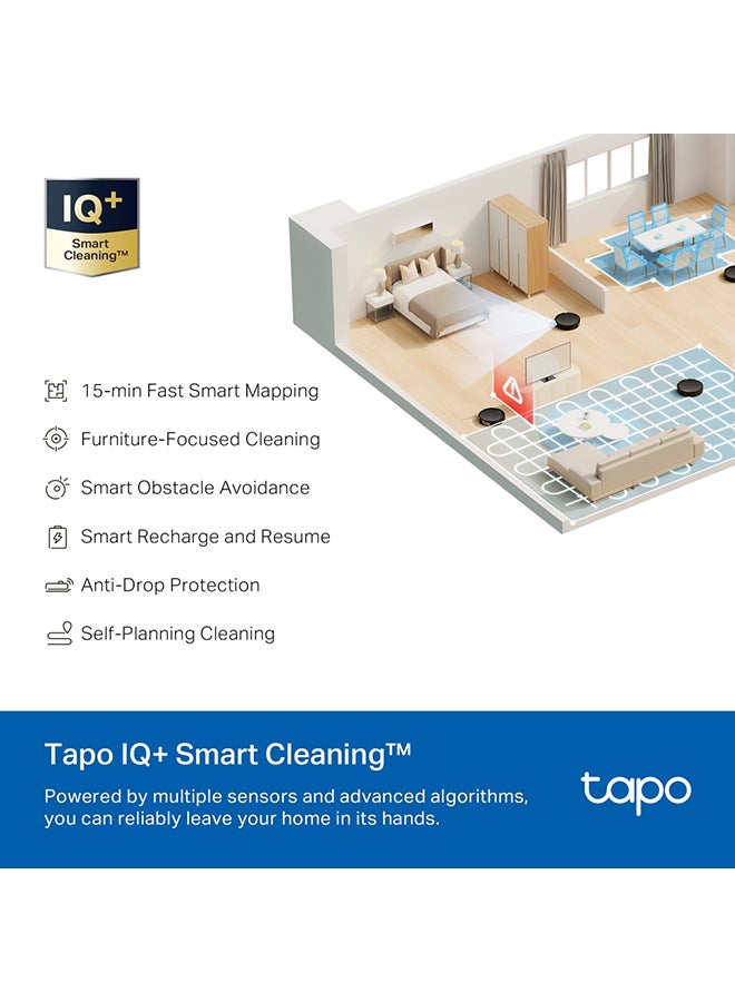 With Tapo IQ+ Smart Cleaning™, powered by advanced sensors and algorithms, the RV20 Max Plus adapts to your home and creates the most effective cleaning routine. Customize cleaning modes, merge or separate areas, and set schedules tailored to your needs. The robot automatically returns to its charging dock when the battery is low and resumes cleaning from where it left off, so your home stays clean without interruption.