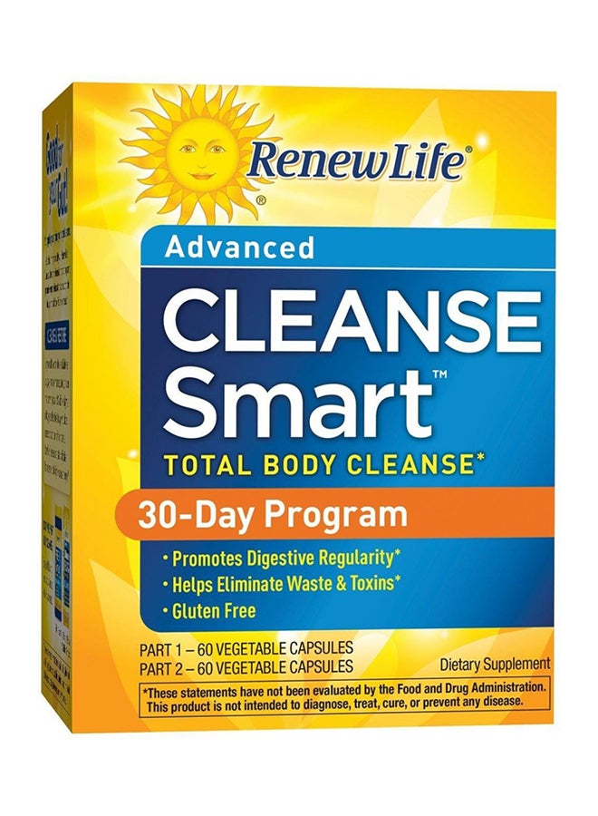Renew Life 3-Day Cleanse Total Body Reset Capsules are an easy-to-use, two-part herbal cleanse and detox formula that works in harmony with your body's natural detoxification process to help you feel lighter, brighter and more energized. This dietary supplement features an advanced herbal blend, cranberry, and magnesium to help promote digestive wellness and gut health, support the healthy elimination of waste and toxins, reduce occasional bloating and water retention, and promote regularity. Renew Life 3-Day Cleanse Total Body Reset vegetarian capsules are easy to take and guarantee potency, quality, and purity through the expiration date. All parts of this detox cleanse are to be taken daily as directed for three days with plenty of water. In the morning, take two capsules on an empty stomach. In the evening, take one capsule with or without food. For additional relief, take two capsules the following evening. This digestive health supplement is gluten-free, dairy-free, and soy-free. Renew Life puts health and wellness first with supplements that are backed by over 25 years of clinical trials.