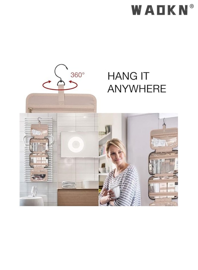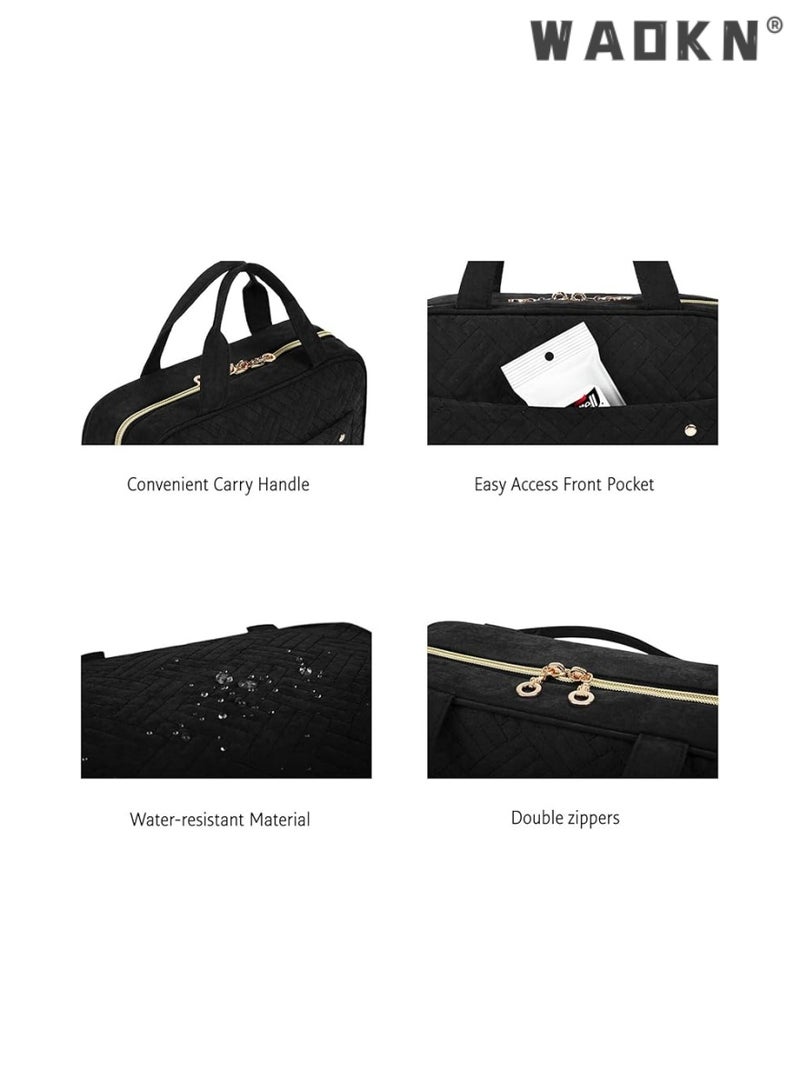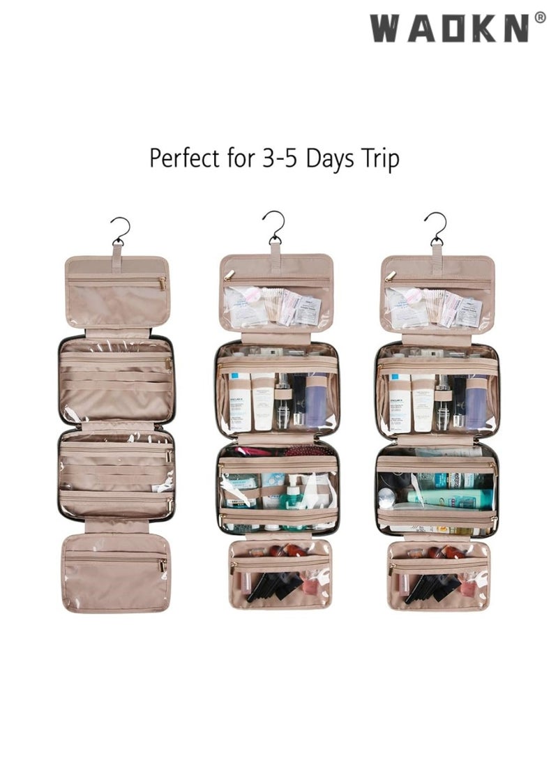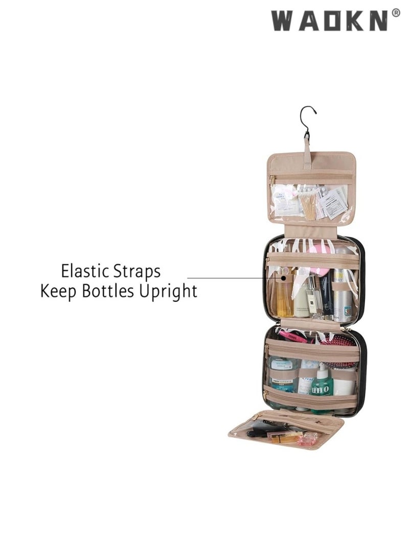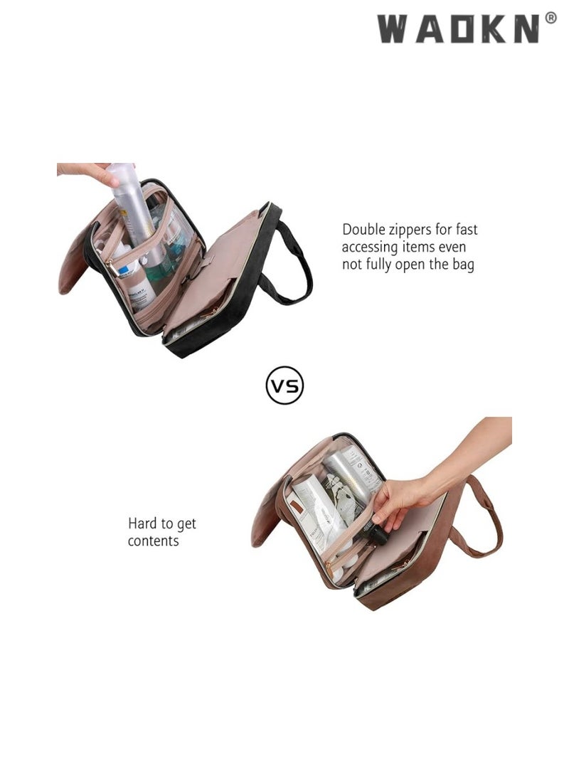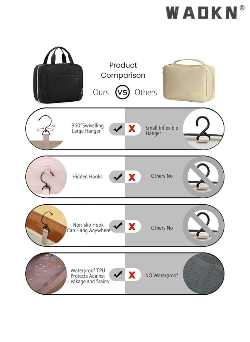 WAOKNLarge Capacity Toiletry Bag Travel Bag with Hanging Hook, Water-resistant Portable Cosmetic Bag Travel Women's Wash Bag Travel Organizer for Accessories Shower Gel Shampoo,Toiletries(Black)