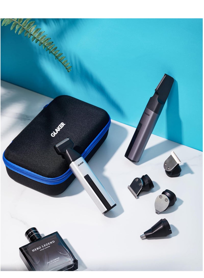 "GLAKER 6-in-1 Multifunctional Trimmer: Simplify your grooming routine with our premium tool. Features: